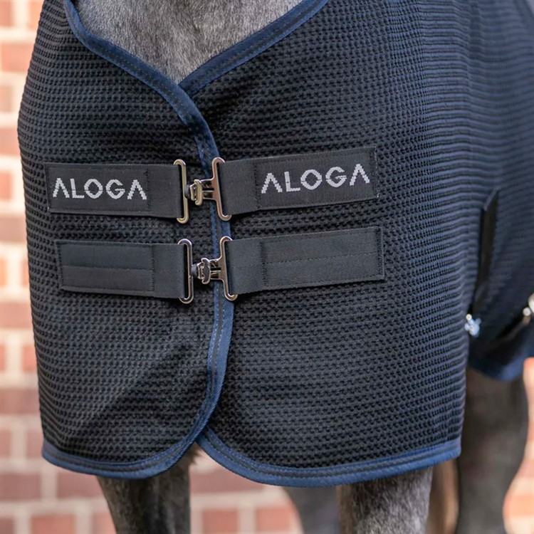 Aloga Waffle Cooler är ett mångsidigt täcke och ett måste i sadelkammaren. Tillverkat i 3D-våffeltyg med taktil yta, absorberar det snabbt fukt och torkar effektivt. Fullt andningsbart och högabsorberande, perfekt efter dusch eller träning för att snabbt dra bort svett från hästens päls. Bogpartiet är fodrat med samma våffeltyg för att underlätta torkning och fukttransport.
