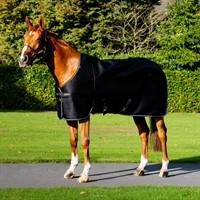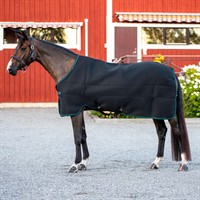 Fukttransport: 3D-meshtyget har hög fuktavledande förmåga och transporterar effektivt bort fukt från hästens rygg in i mesh-lagret. Fuktigheten avdunstar snabbt, vilket håller hästen torr och bekväm.
