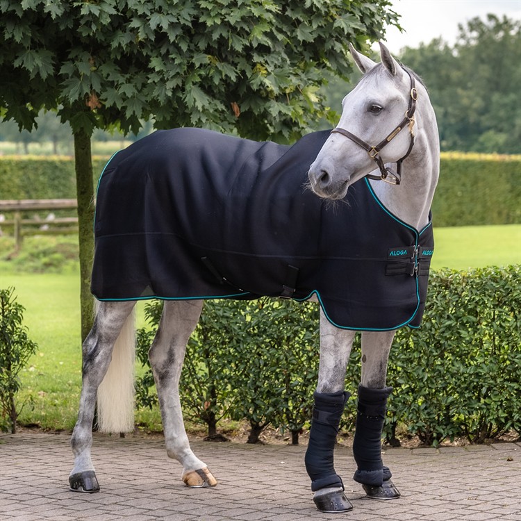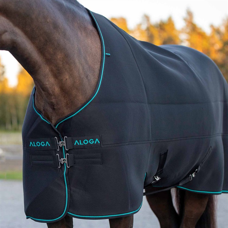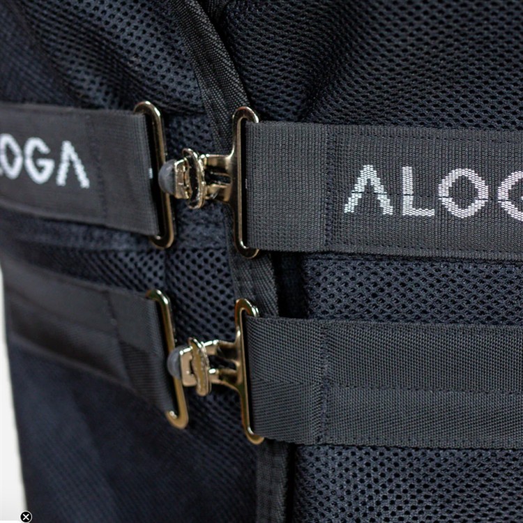 Aloga Pro Mesh Cooler är designad för användning under varma väderförhållanden. Detta högandningsbara cooler-täcke är tillverkat i 3D-airmesh som gör att kroppsvärmen lätt kan avdunsta genom tyget samtidigt som det ger god luftcirkulation medan hästen bär täcket. Utvecklat i samarbete med Alogas sponsorryttare, kan detta täcke användas vid resor, efter dusch eller efter träning. Bogpartiet är fodrat med Aloga-embossat foder för att minska risken för skav och bibehålla pälsens kondition och glans.