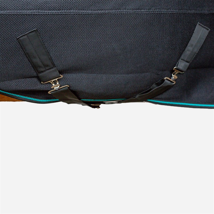 - Två avtagbara kryssgjordar – håller täcket på plats och kan lätt tas bort vid tvätt eller vid ridning.