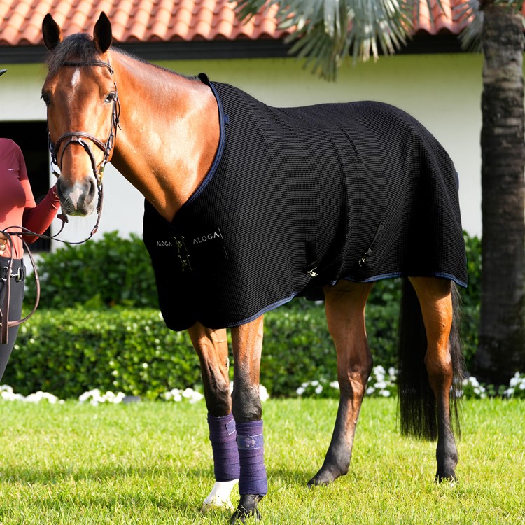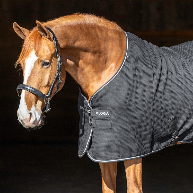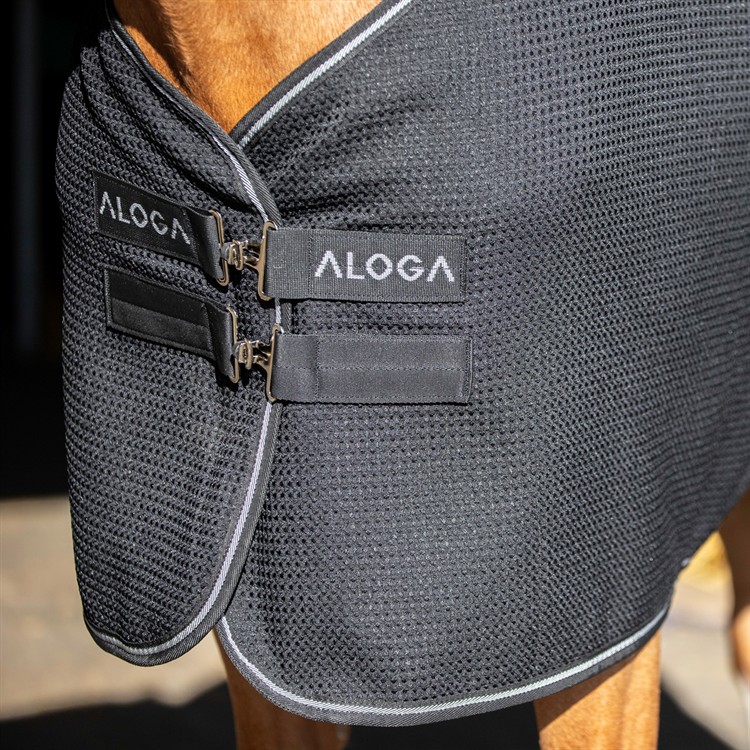 Aloga Waffle Cooler är ett mångsidigt fleecetäcke som är ett måste i sadelkammaren. Täcket är tillverkat i 3D-tyg med våffelstruktur och en taktil yta som snabbt absorberar fukt och torkar snabbt. Helt andningsbart och med hög fuktavledning är detta täcke perfekt efter dusch eller träning för att snabbt dra bort fukt och svett från hästens päls. Bogpartiet är fodrat med samma våffeltyg för att underlätta torkning och fukttransport.