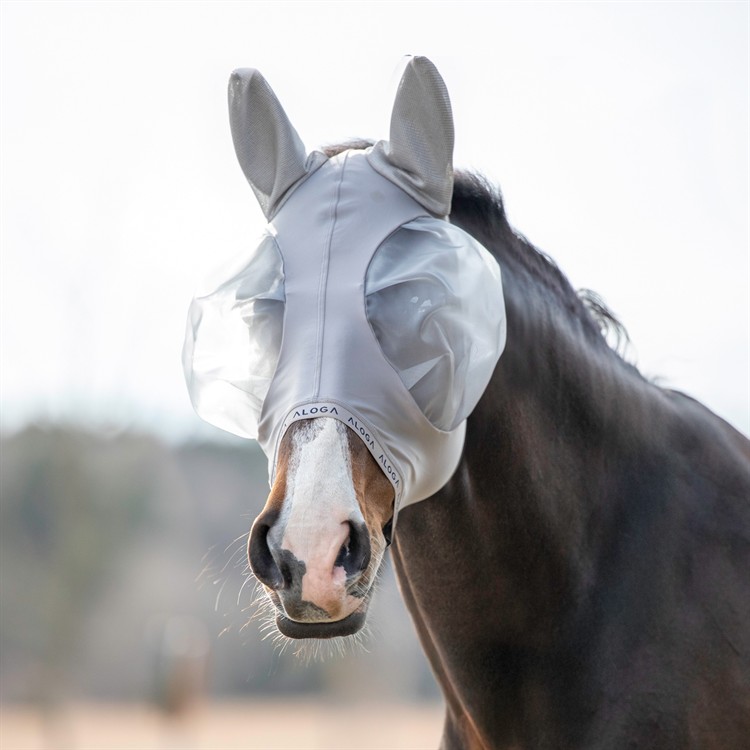 Aloga Fly Mask är designad för att ge skydd mot insekter och flugor under varma dagar. Masken är lätt i vikt och har en hybridkonstruktion med stretchigt lycra-tyg i ansiktsdelen och 3D-mesh vid ögonen, vilket ger flexibel täckning på de områden hästen behöver mest skydd. Polyester-mesh på öronen täcker öronpartiet utan att begränsa rörelsefriheten.