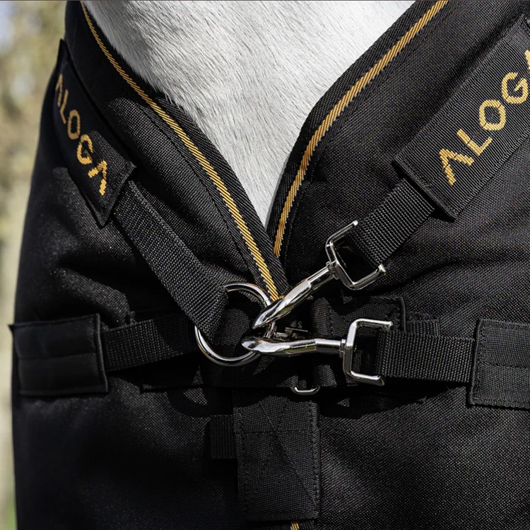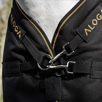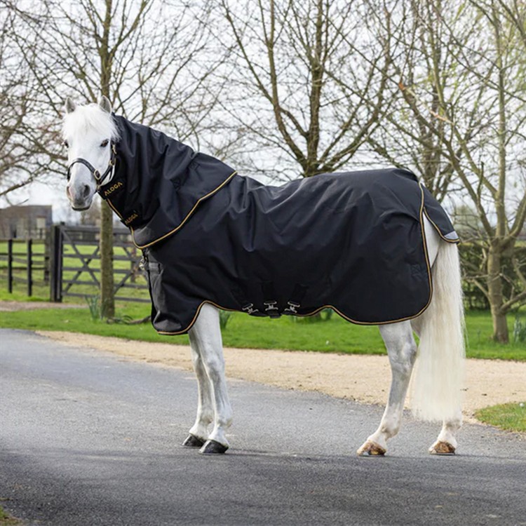 Aloga Pro Turnout 200g med halsdel är ett medeltjockt utetäcke som ger isolerat skydd när temperaturen sjunker eller om din ponny är klippt. Tillverkat i slitstark 1200D polyester, erbjuder täcket vattentätt och andningsbart skydd för ponnyer som sliter på täcken. 200 g termobunden fiberisolering värmer där hästen behöver det mest, samtidigt som god andningsförmåga förhindrar överhettning.