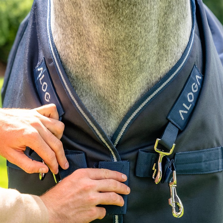Pro Turnout 0g från Aloga Equestrian är deras mest slitstarka och lätta utetäcke. Yttertyget i robust 1200D polyester är vattentätt och andningsbart, vilket ger ett pålitligt skydd för hästar som sliter hårt på sina täcken.