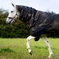 Pro Turnout 200g med hals ger isolerande skydd när temperaturen sjunker eller när hästen är klippt. Detta medeltjocka utetäcke är designat för utomhusbruk och tillverkat i slitstark 1200D polyester, vilket ger ett vattentätt och andningsbart skydd – perfekt för hästar som sliter hårt på sina täcken.