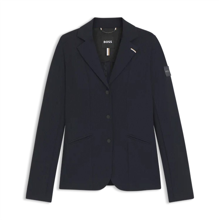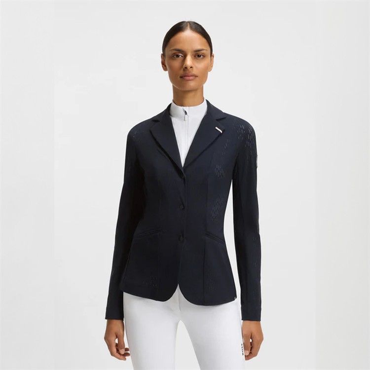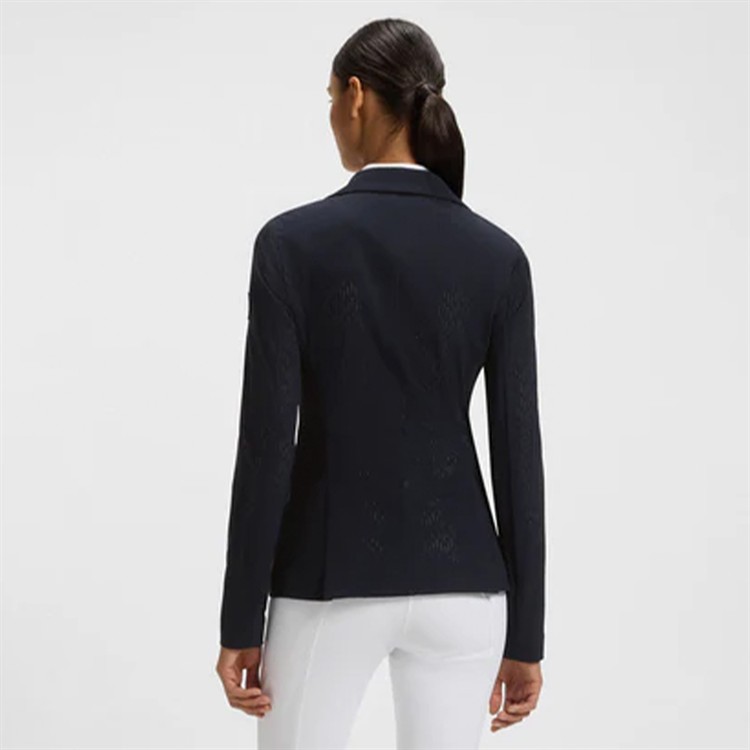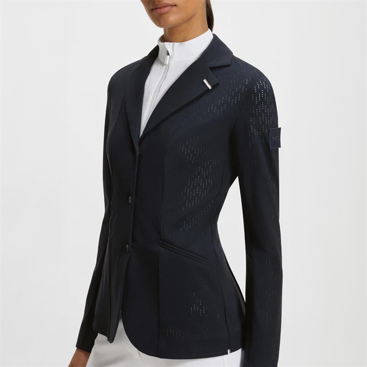 Tävlingskavaj tillverkad i en särskilt elastisk, perforerad materialblandning, har dragkedja och tryckknappar samt en logopatch och ett foder med monogram. Airbag kan bäras under kavajen.