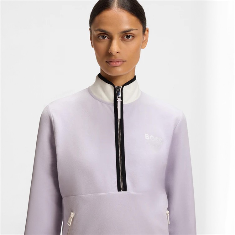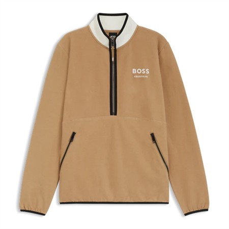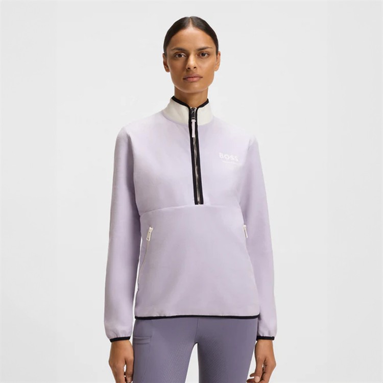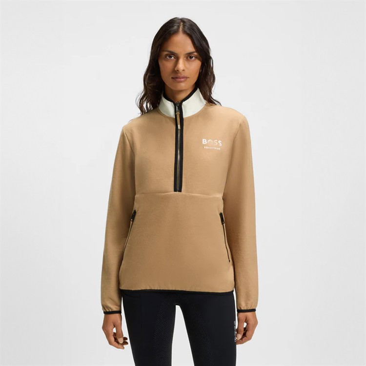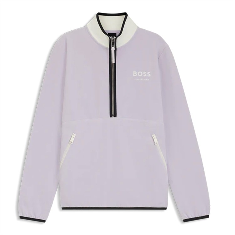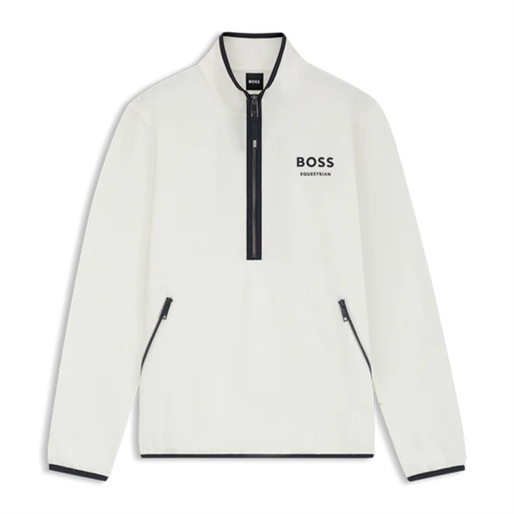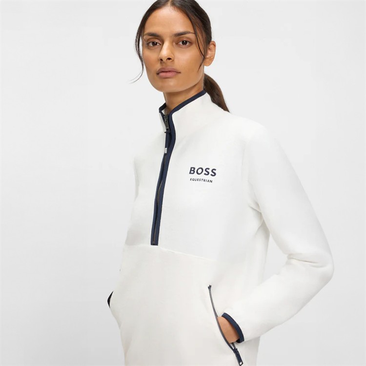 Pullover med halv dragkedja, kontrastfärgade dragkedjor, broderad Boss Equestrian-logotyp på bröstet och dragkedjefickor fram.