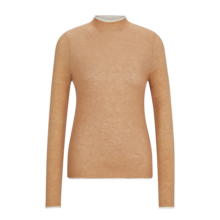 Ultratunn, supermjuk polotröja som känns som siden mot huden. 2 färgvarianter, olika på insidan och utsidan, rullade kanter.50% ULL / 50% POLYESTER VATTENLÖSLIG FIBER