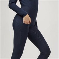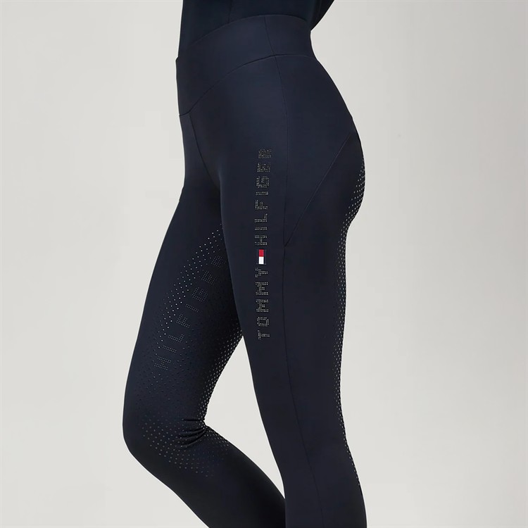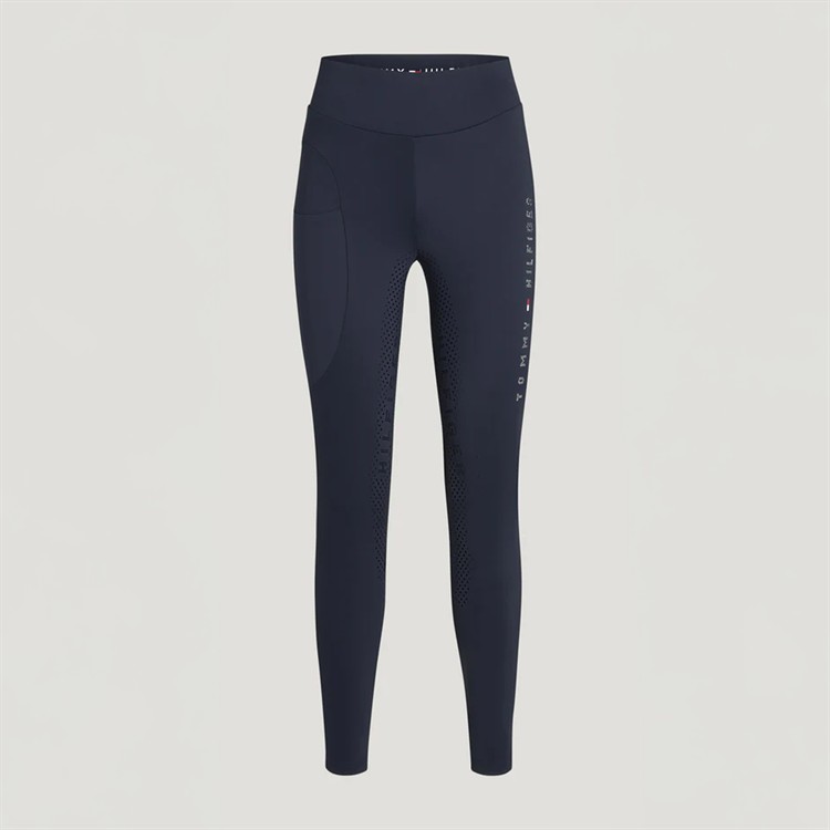 Leggingsen har den klassiska och ikoniska Tommy Hilfiger-loggan i strass längs låret och är försedda med helskoning i silikon som ger ett säkert och stabilt grepp i sadeln. Den praktiska mobilfickan på höger lår gör dem lika funktionella som stilrena. Genomtänkta detaljer som ger en exklusiv känsla och fulländar den sportiga och eleganta looken.