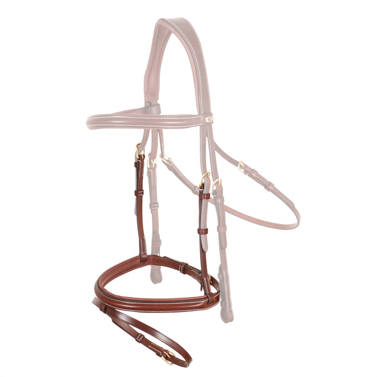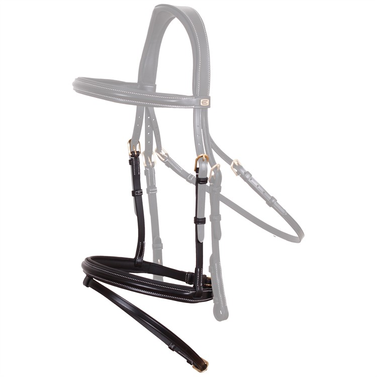 Paddad nosgrimma designad för tränset Wynswood, tillverkad i exklusivt italienskt läder. De stilrena vita sömmarna i kombination med eleganta mässingspännen ger ett klassiskt och lyxigt helhetsintryck. Den mjuka paddningen ger ökad komfort och en behaglig passform för hästen, samtidigt som den höga läderkvaliteten säkerställer lång hållbarhet och en vacker finish över tid.