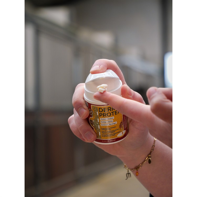 Applicera Derma Protek på det berörda området och massera in för att underlätta absorptionen. Täck hela området med ett tunt lager.