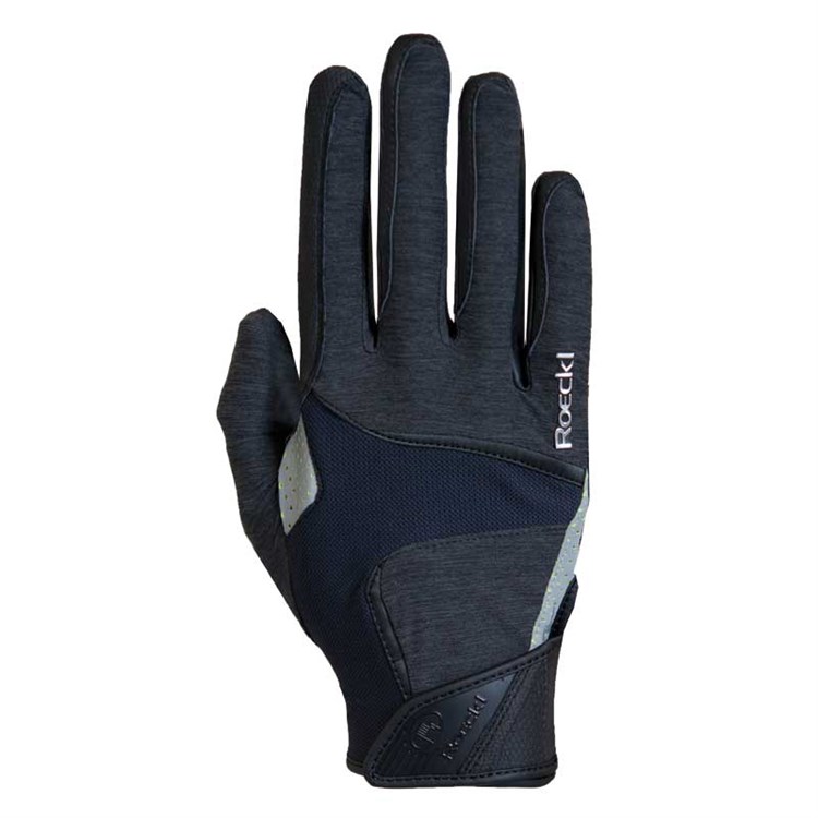 Ridhandske i Fantasia Melange Lycra med infällningar av Micro Mesh och reflekterande detaljer. Insida i Roeck-Grip, Drytec 65. Touchscreen compatible. Roeckls patenterade Comfort Cut ger en bekväm handske utan störande sömmar.