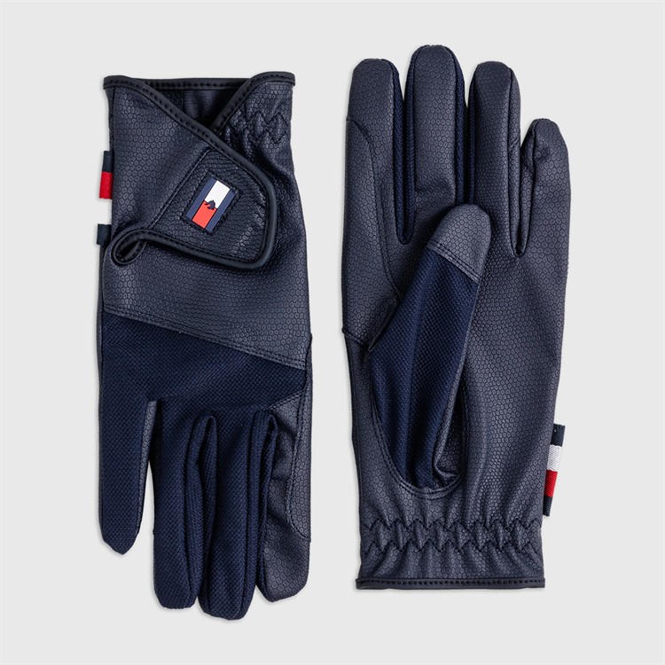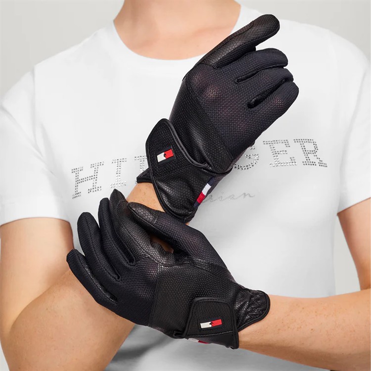 Med en passform som känns som en andra hud ger de både hög komfort och full rörelsefrihet. Det greppvänliga materialet säkerställer ett stabilt och säkert grepp om tyglarna, medan kardborreknäppningen med Tommy Hilfiger Equestrian-logga i silikon ger en stilren och sportig finish.
