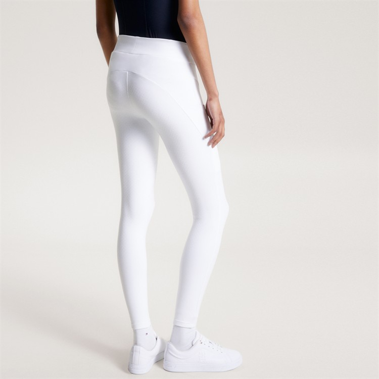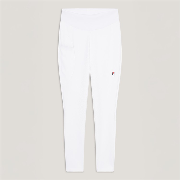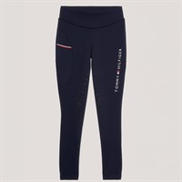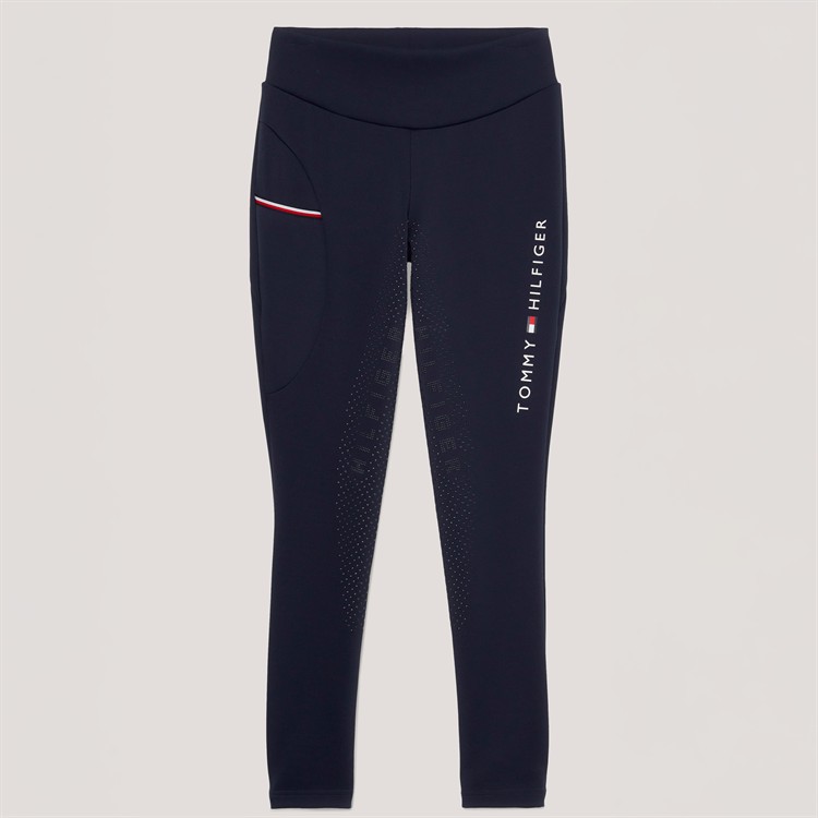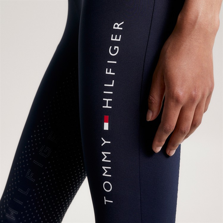 Leggingsen har den klassiska och ikoniska Tommy Hilfiger-loggan längs låret och är försedda med helskoning i silikon som ger ett säkert och stabilt grepp i sadeln. Den praktiska mobilfickan på höger lår gör dem lika funktionella som stilrena. Genomtänkta detaljer som ger en exklusiv känsla och fulländar den sportiga och eleganta looken.