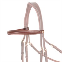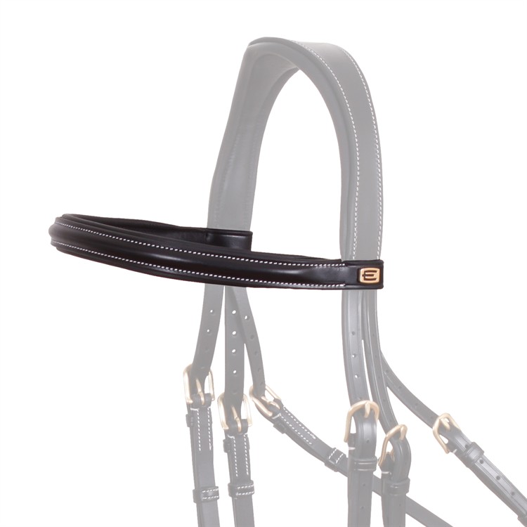Klassiskt pannband i exklusivt italienskt läder, dekorerat med stilrena vita sömmar som ger ett tidlöst och sofistikerat uttryck. På båda sidor pryds pannbandet av en lyxig E-logga i mässing, en elegant detalj som lyfter helheten och skapar en exklusiv finish.